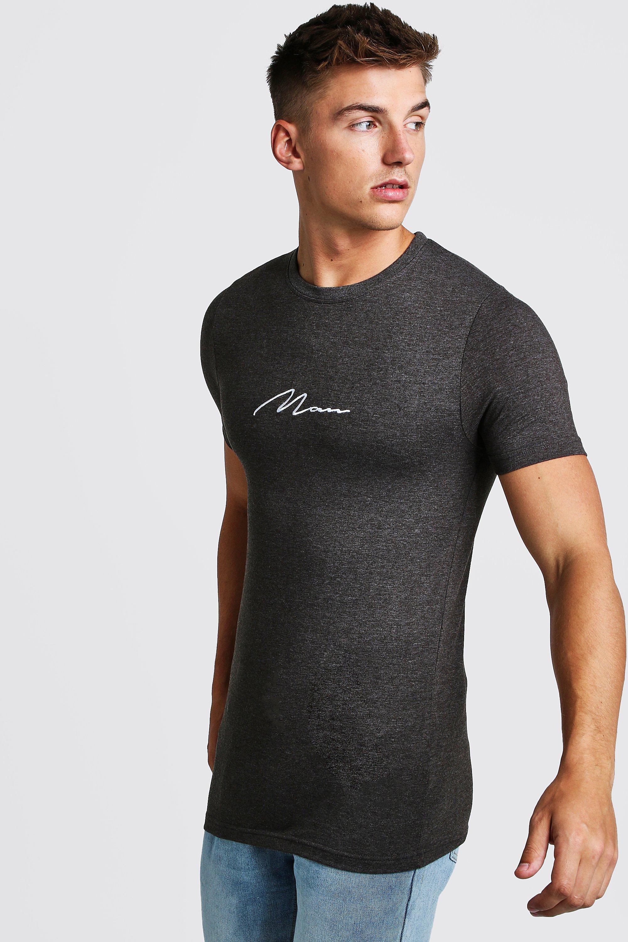Muscle Fit Man Signature Embroidered T Shirt Boohoo Nz